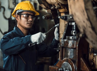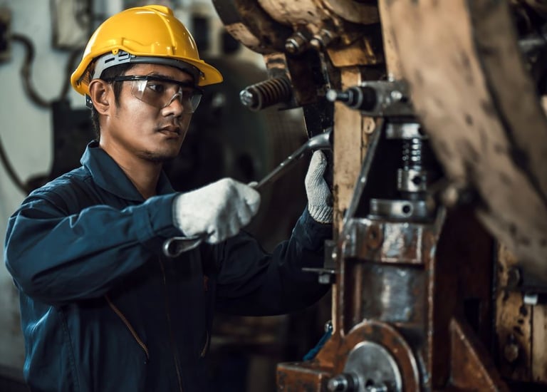 Manutenção de máquinas para garantir eficiência operacional contínua.